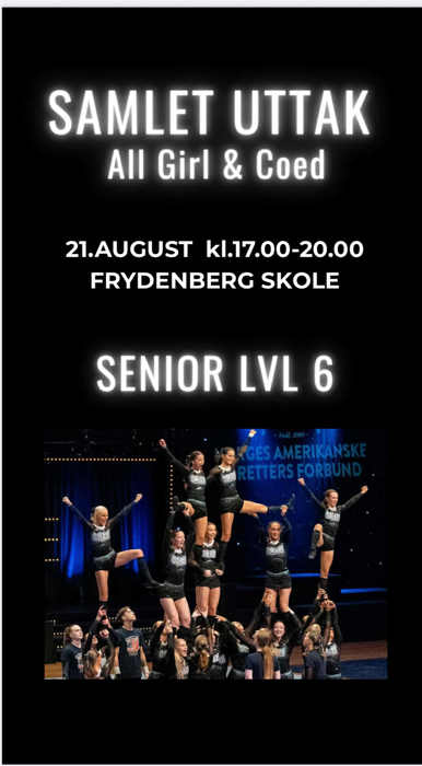 Uttaksskjemaer for Thunder, Steel, Gold og senior Publisert av Hanne Holm-Lunder Markussen den 08.08.25. Uttaks datoer: Oppmøte 30 min før uttaket starterSteel lv 4 og Gold lv 5 (junior): 19.august kl17:00 - 20:00Thunder youth lv 4: 20. august kl17:00 - 20:00Senior lv 6: 21.august kl17:00 - 20:00Uttaksskjema senior sesong 25/26Uttaksskjema Steel og Gold sesong 25/26Uttaksskjema Thunder sesongen 25/26